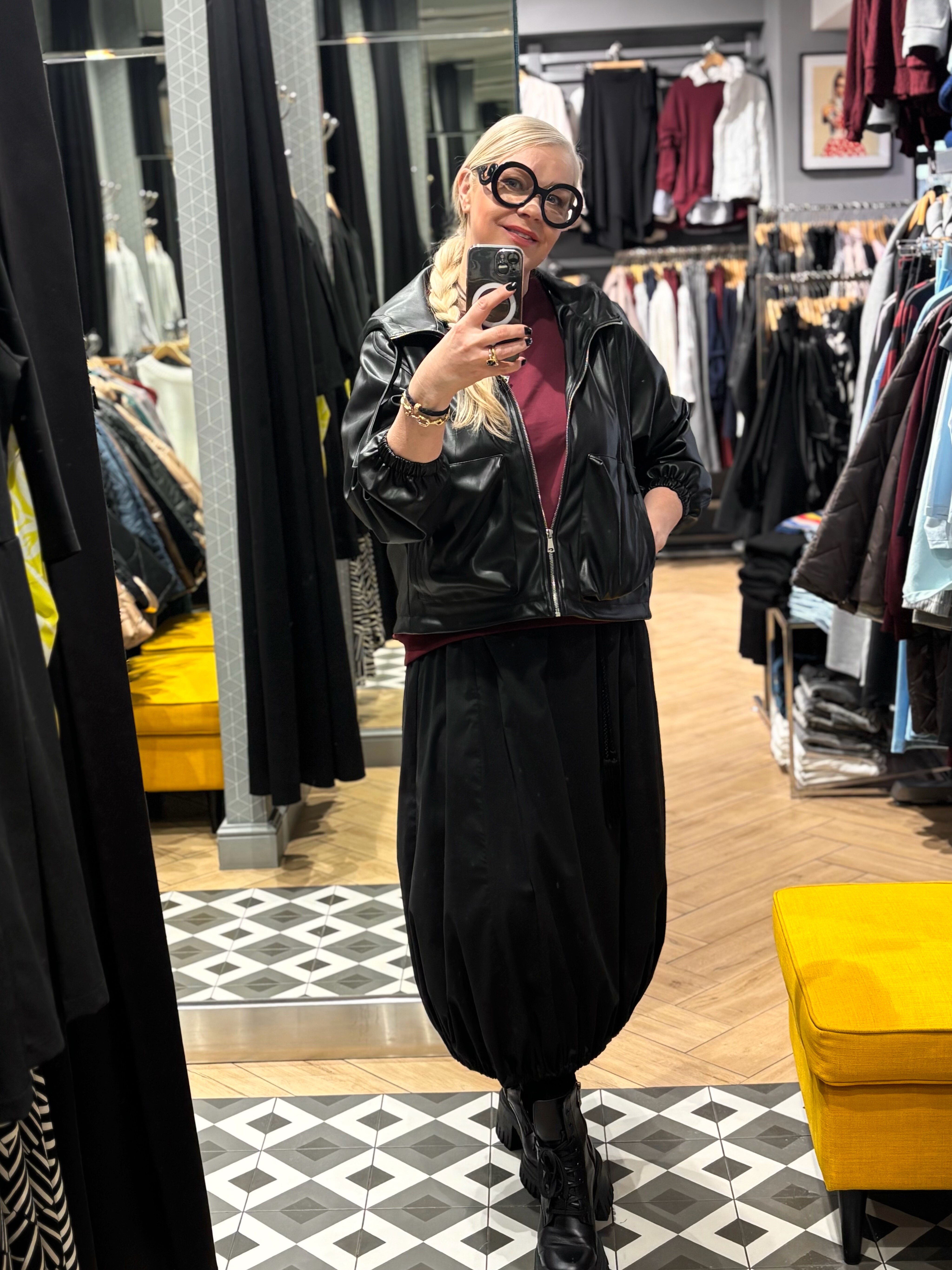 Kurtka wykonana z niezwykle miękkiej i przyjemnej imitacji skóry. Na dole zakończona jest ściągaczem, który można regulować. Może być mocno ściągnięty lub zupełnie luźny. Ta kurtka to zdecydowanie perełka dla kobiet podążających za modą.